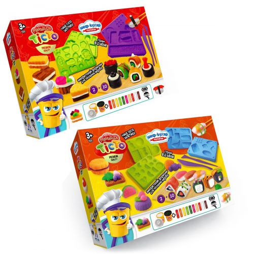 Комплектація: Тісто для ліплення – 10 брикетів, тісто для ліплення – 2 баночки, формочки для ліплення – 4 шт., Комплект стеків, килимок – 1 шт, палички для суші, інструкція – 1 шт.