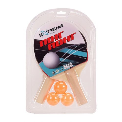 Набір для гри в настільний теніс. У комплекті є: 2 дерев’яні ракетки, 3 м’ячики Розмір ракетки – 24х15 см., діаметр м’ячика – 4 см. Виконано з якісних та безпечних матеріалів.