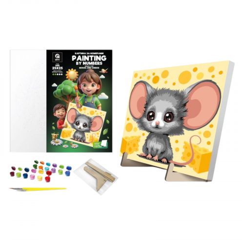 Набір для розпису по номерах 25х25 см “Мишка і Сир” з деревʼяною підставкою