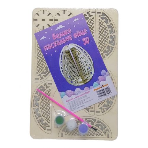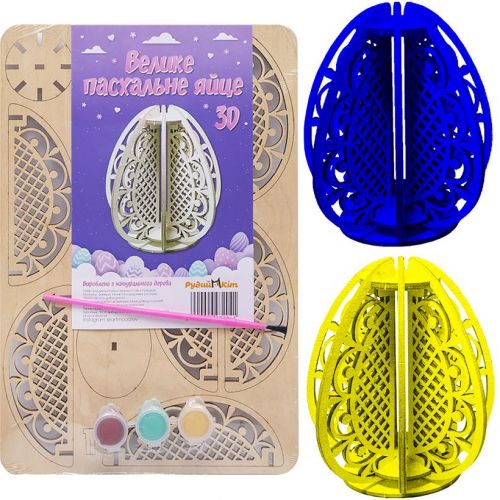 Набір для розпису “Великодне яйце” – це цікаве заняття для дітей та дорослих! Спочатку потрібно зібрати деревʼяний конструктор, а потім розфарбувати його у яскраві кольори. У набір входять 3 кольори фарб та пензлик. Готове яйце заввишки 12 см стане гарною прикрасою до Великодня або оригінальним подарунком.