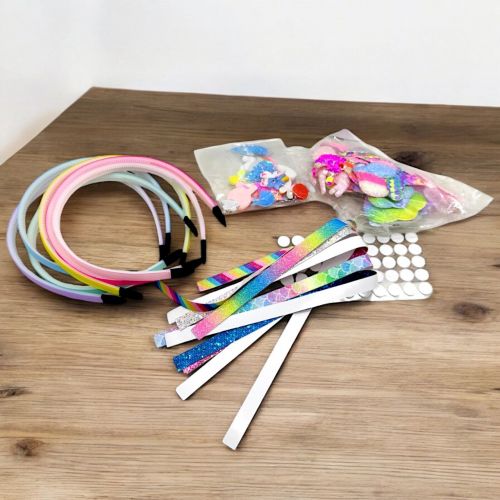 Комплектація: гнучкі базові обручі вкриті тканиною (6 шт.); кольорові стрічки для поклейки на обручі; пластикові, гумові й тканинні прикраси; двосторонні клейкі елементи