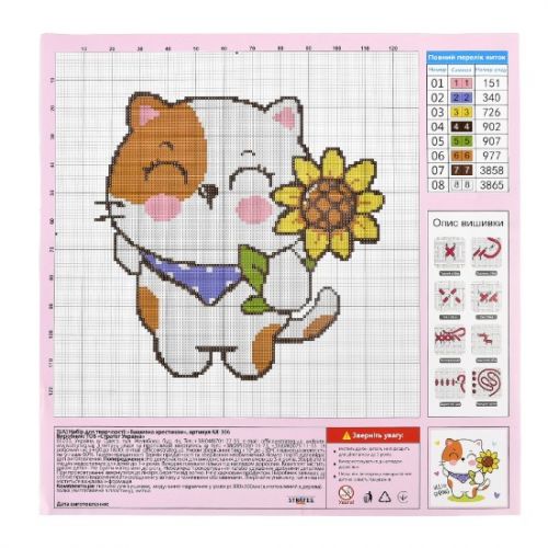Набір для творчості вишивка хрестиком розміром 20х20 см. Чудовий вибір для подарунка чи нового хобі. Вишивати треба тільки центральні частини, не чіпаючи фон. І в результаті ви отримаєте готову картину з обʼємним малюнком, ніби 3D ефект. У комплект входить набір ниток і пластикова голка, що забезпечить безпечний процес вишивання для дітей. Кількість кольорів – 8. Рекомендовано для дітей старше 7 років.