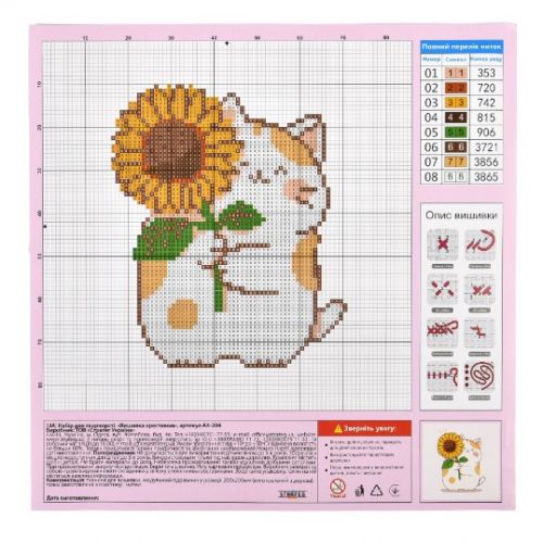 Набір для творчості вишивка хрестиком розміром 20х20 см. Чудовий вибір для подарунка чи нового хобі. Вишивати треба тільки центральні частини, не чіпаючи фон. І в результаті ви отримаєте готову картину з обʼємним малюнком, ніби 3D ефект. У комплект входить набір ниток і пластикова голка, що забезпечить безпечний процес вишивання для дітей. Кількість кольорів – 8. Рекомендовано для дітей старше 7 років.
