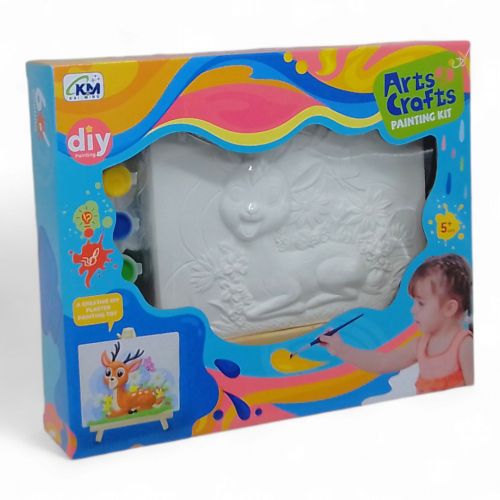 Цей набір для творчості буде цікавим подарунком для дітей старше 5 років. До набору включено гіпсовий блок із нанесеним зображенням (розміри блоку: 21,5х17х3 см), а також все необхідне для його прикрашання: акрилові фарби, пензлик та палітра для змішування кольорів. Після того, як роботу над картиною буде завершено, її можна буде виставляти як декор на полицю за допомогою невеличкого мольберта, який йде у комплекті.