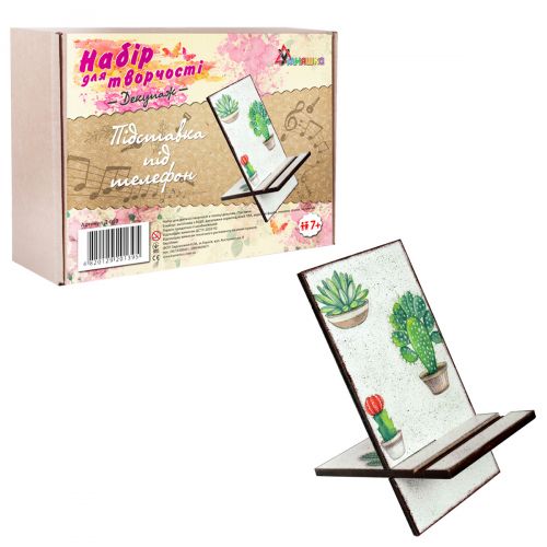 Комплектація: Заготовка з МДФ, декупажних серветка, клей ПВА, акрилові фарби, кисть для декупажу, спонж.