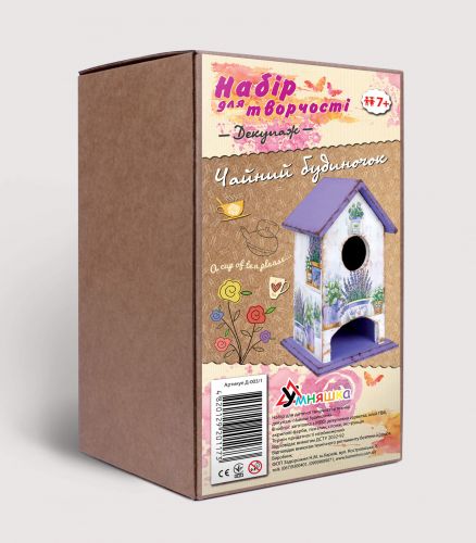 Комплектація: Заготовка з МДФ, декупажних серветка, клей ПВА, акрилові фарби, кисть для декупажу, спонж.