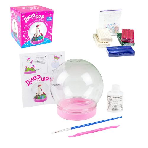 З набором для творчості “Диво-куля” дитина зможе створити гарну іграшку власними руками. їй належить зліпити зі спеціального пластиліну милого поні на галявині, помістити його в прозору кулю і залити чарівним розчином із мерехтливими блискітками.