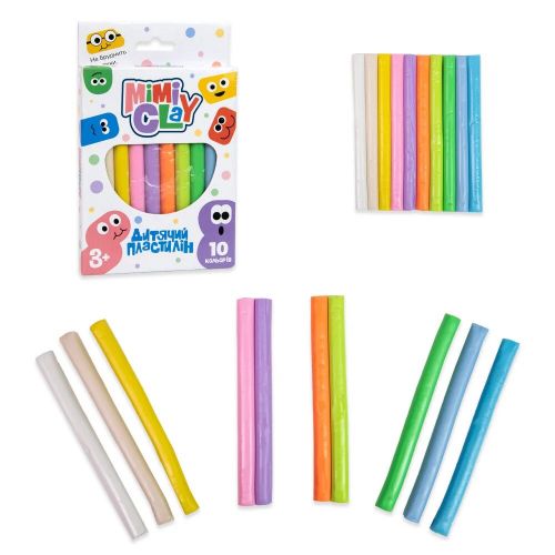 Набір для творчості “Дитячий пластилін: Mimi clay”, 10 кольорів. У наборі 10 стіків різнокольорового пластиліну.