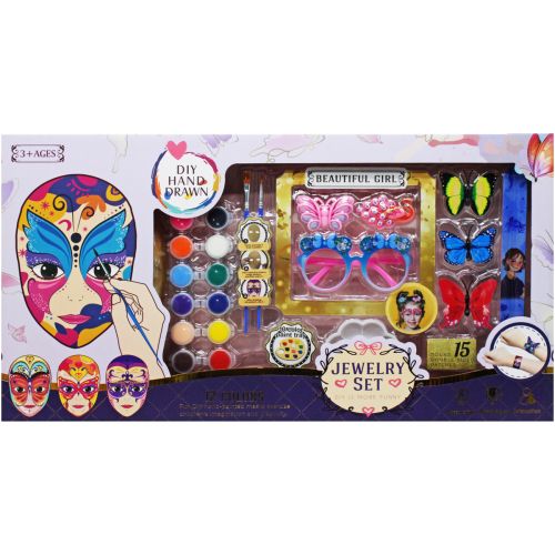 Комплектація: Маска, 12 кольорів фарби, палітра, 2 пензлики, окуляри, браслет, 2 шпильки, прикраси