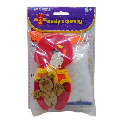 Комплектація: фетрові деталі, набір ниток, голка, інструкція (на упаковці), синтетичний наповнювач