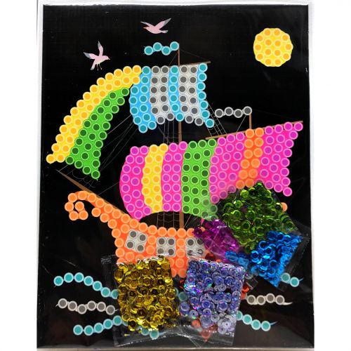 Набір для створення картини з паєток.За допомогою даного набору можна створити гарну мозаїку, яка стане чудовою прикрасою інтерʼєру дитячої кімнати. Принцип створення картини подібний до створення алмазної мозаїки: паєтки різних кольорів слід розміщувати по відповідних осередках. Розмір виробу: 20х25 см.