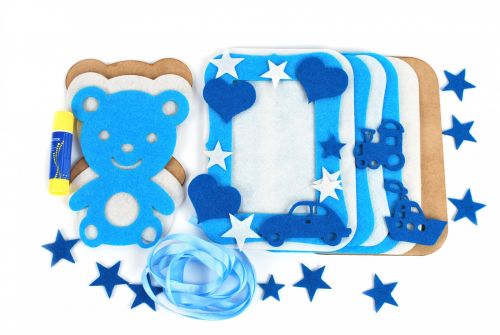 Набір для творчості “Фоторамки” – це комплект фетрових викрійок для створення власних чарівних  фоторамок. Коробка містить: набір фетрових викрійок, стрічку, підставки для рамок, клей. Зі складових набору можна зібрати 3 рамки. Виготовлено в Україні.