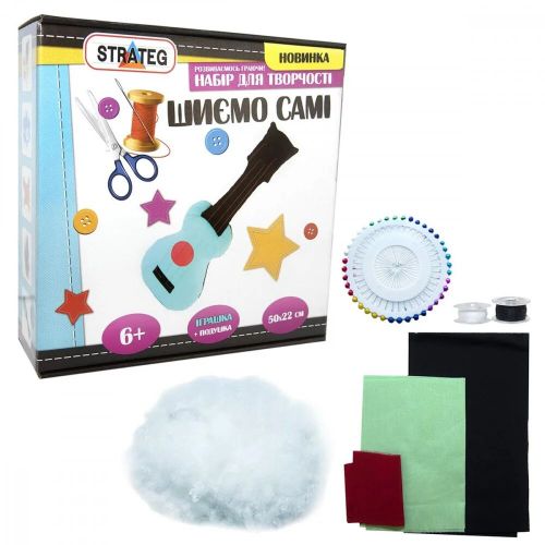 Набір для творчості “Шиємо самі” буде цікавий дорослим і дітям, які зможуть зробити своїми руками іграшки дитині або сувенір знайомим і близьким людям. Набір включає: комплект тканини, мʼякий наповнювач, нитки, голки, крейда, шпильки, намистинки, стрічку, інструкція, викрійку.
