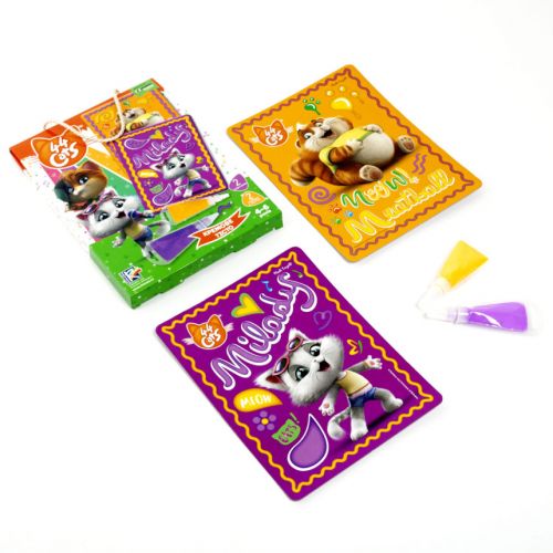 Набір для творчості “44 Котенка: Кремове тісто”. У наборі є картинка – зображення персонажа з мультфільму “44 Котенка”, яку можна прикрасити різнобарвним тестом. Для дітей 4-6 років.