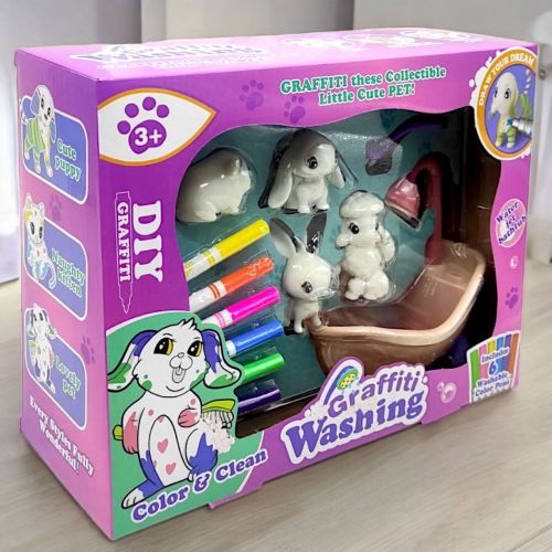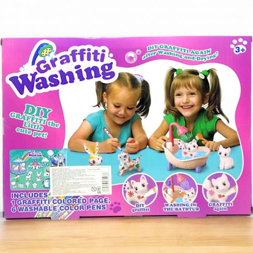 Набір для творчості “Graffiti Washing” — це захопливий спосіб розвивати фантазію та дрібну моторику! У комплекті: 4 флоксові фігурки тваринок, 6 кольорових фломастерів, ванночка, щіточка та помпова система подачі води. Розмалюй, помий і створи новий образ знову — гра ніколи не набридає!