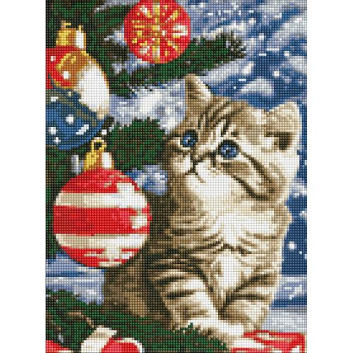 Набір з алмазною мозаїкою “Кошеня під ялинкою” з АВ стразами 30х40см