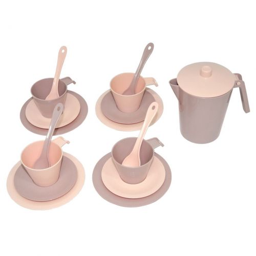 Дитячий набір пластикового посуду складається з 17 елементів. У наборі: 4 чашки, 4 маленькі блюдечка, 4 блюдечка побільше, 4 ложечки та чайник. Набір виконаний з якісного та безпечного пластику, упакований у зручну сумочку.