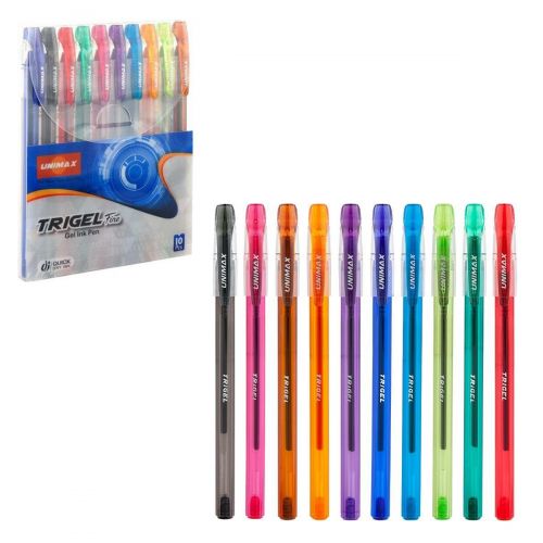 Яскраві різнокольорові гелеві ручки. 10 кольорів в комплекті. Виготовлені з якісного пластику. Моментально сохнуть, гнучкий затиск для зручності написання.