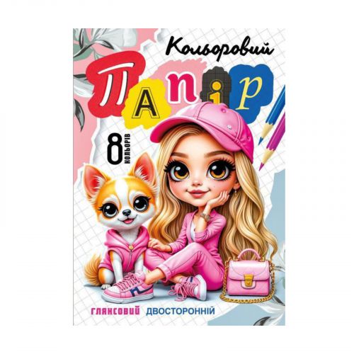 Набір кольорового паперу двосторонній , глянцевий 210х297 мм, 8 аркушів.