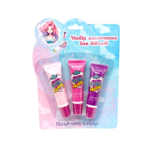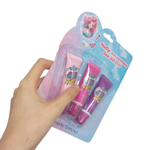 Набір Деск косметики буде хорошим подарунком для юної леді. У наборі є 3 блиски для губ. Виконано набір з якісних і безпечних матеріалів. Для дітей від 3-х років.