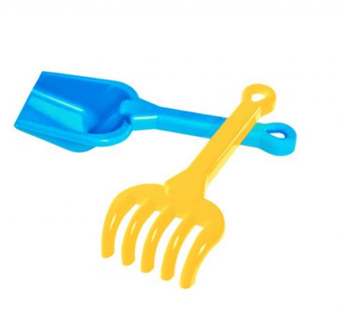 Набір для гри в піску. Зручні лопатка і грабельки сподобаються вашому малюку. Лопатка – 22 см, граблі – 19 см.