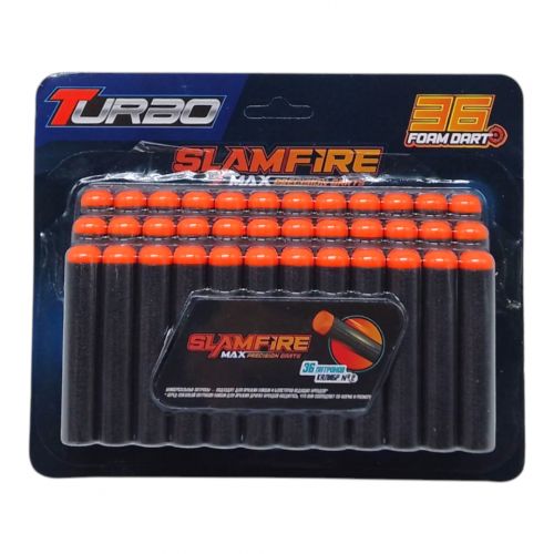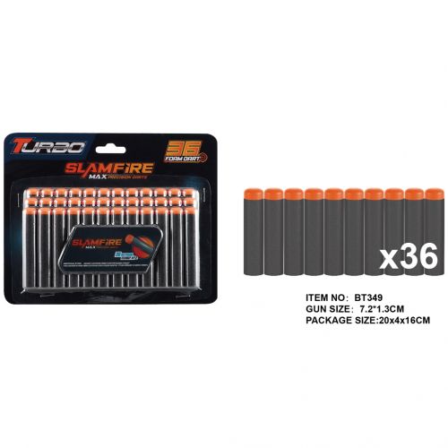 Набір мʼяких набоїв – 36 штук, розміром 7,2 х 1,3 см. Виготовлені з мʼякого спіненого матеріалу, оснащені гумовим наконечником для безпечної гри. Підходять для більшості іграшкових бластерів. Відмінний вибір для активних ігор як удома, так і на вулиці.