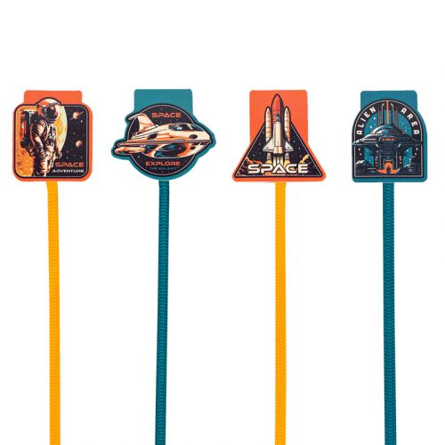 Магнітні закладки Kite Space, незімінні помічниці для учня. Закладка надійно фіксує сторінку, а також має стрічку-лясе для ще більш зручного та швидкого пошуку сторінок. Один набір містить чотири різні за формою та дизайном закладки, об’єднані спільною космічною тематикою . Матеріал: магніт на клейовий основі, паперове покриття.