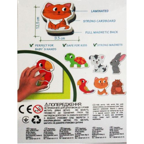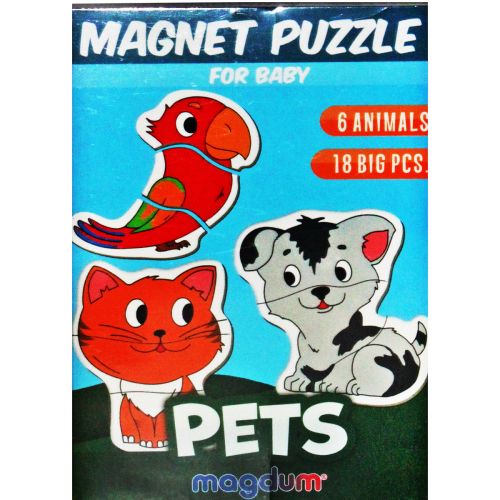 Набір магнітів “Домашні тварини” буде добрим подарунком для дитини. Набір має 18 магнітиків. З них можна скласти зображення 5 домашніх тварин. Магніти зверху ламіновані, під низом якісний картон та сам магніт. Допоможе розвивати логічне мислення.
