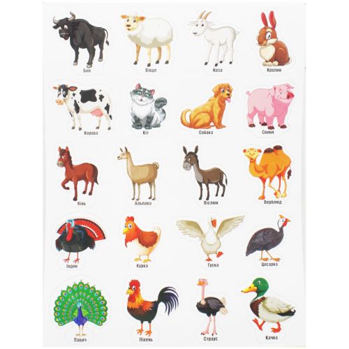 Набір з 20-ти магнітів з дикими тваринами на аркуші розміром 30х47 см. Кожне звірятко підписано українською мовою. Граючи з такими магнітами дитина зможе весело та легко вивчити світ природи. Виконані з якісного та безпечного матеріалу. Для дітей віком від 3-х років.