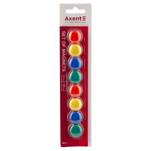 Магніти використовуються для фіксації інформації на гладких металевих поверхнях, перш за все сухостираємих дошок і фліпчартів. Їх використовують для візуальної комунікації в процесі презентацій, зустрічей, навчань, коли на дошці потрібно закріпити друкований матеріал. Також нотатки, чеки, квитанції, дитячі малюнки не загубляться, якщо прикріпити їх магнітом до дошки. У набір входять магніти в кольоровому пластиковому корпусі, круглі, діаметром 20 мм.