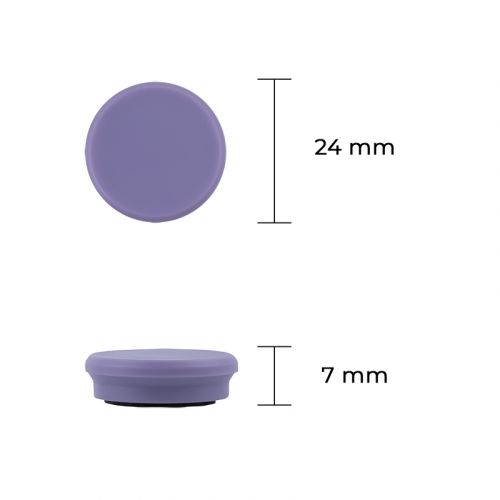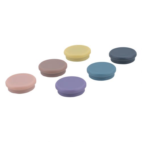 У наборі — 6 різнобарвних круглих магнітів у пластиковому корпусі, упаковані в прозорий блістер. Діаметр кожного магніту — 24 мм ширина, 4мм висота.