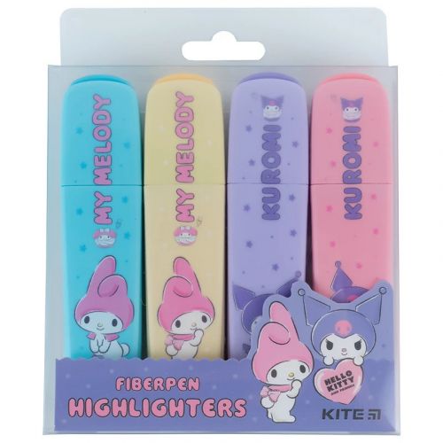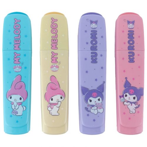 Набір з 4-х маркерів-текстовидільників, прикрашених зображеннями героїнь бренду Sanrio – Куромі та Май Мелоді. Обовʼязково знадобляться у школі, на роботі та вдома. Пігментне чорнило стійке до ультрафіолету, довго не вицвітає. Кольори не перебиваються на зворотний бік листка. Розмір маркера: 11 х 2.5 х 1 см.