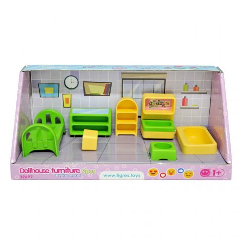 Дитячий іграшковий меблевий набір для ляльок може стати хорошим подарунком для вашого маленького дива. Діти зможуть також використовувати цей набір разом з іншими наборами компанії, що в кінцевому підсумку може вишикується в повноцінні апартаменти для ваших ляльок. Середній розмір меблів від від 4 до 7 см.