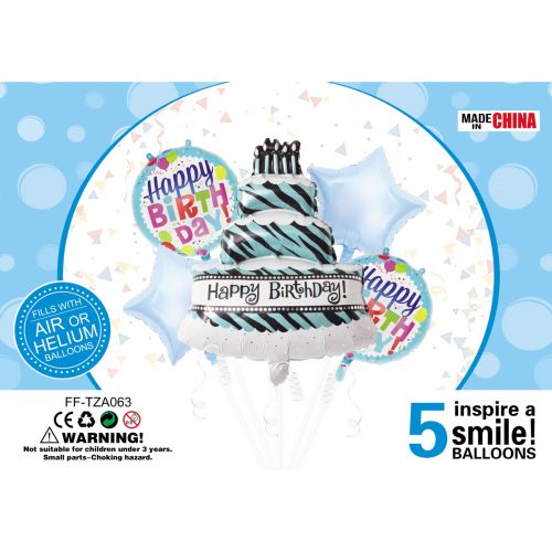 Яскравий набір кульок “Торт блакитний”. Милий та барвистий комплект. У наборі 5 фольгованих кульок: 1 велика кулька у вигляді торта, 2 у вигляді зірочок та 2 з привітанням. Всі кульки якісні та надійні.