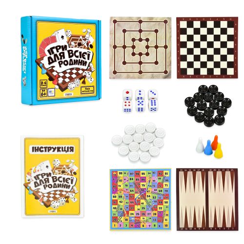 Більше немає потреби носити з собою надмірну кількість коробок настільних ігор, адже в цьому наборі є все необхідне. Шашки, змії та сходи, млин, нарди – гри, які гарантують розважати всю родину, від наймолодших до найстаріших. Прекрасний подарунок для сімʼї та друзів!