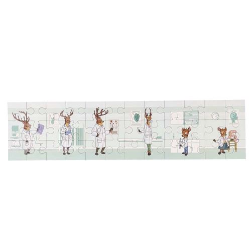 Приєднуйтесь до захоплюючого світу медицини разом з набором пазлів Лікарі! Зібрана картинка має розмір 42 см * 10,5 см і складається з 36 елементів. Цей набір пазлів ідеально підходить для дітей віком від 3 років і допомагає розвивати логічне мислення, увагу та моторні навички. Погрузіться в захоплюючий світ медичних пригод разом з веселими оленятами-лікарями. Вони завжди готові допомогти та лікувати, роблячи світ кращим місцем. Зберіть цей набір пазлів разом з родиною або друзями і насолоджуйтесь спільним часом. Пазл Лікарі – це відмінний спосіб розважитись та відкрити світ медицини для вашої дитини.