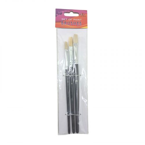 Набір пензлів для малювання,Щетина,розмір 8,10,12 3шт.в пакеті,плоска головка,деревʼяна ручка