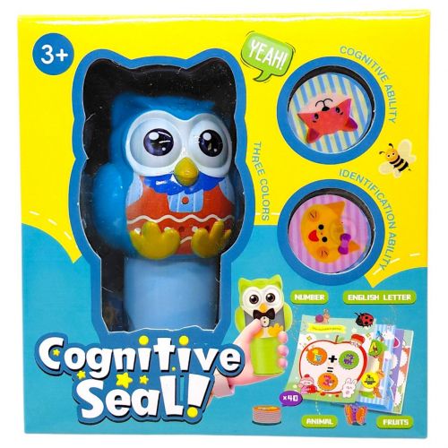 Набір печаток виконаний у привабливому дитячому дизайні з яскравими кольорами. Основний елемент – фігурка у вигляді сови, що використовується як тримач для штампів. У комплекті передбачені змінні штампики з різними зображеннями для створення відбитків на папері.