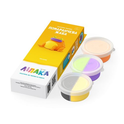 Набір пластиліну, що самостійно твердіє, ЛІПАКА – ЕКЗОТИЧНІ ТВАРИНИ: ПОМАРАНЧЕВА ЖАБА – розважить і малюків і дорослих. За допомогою анімаційних інструкцій в застосунку HEY CLAY, Ви зможете зліпити кумедну жабку. А завдяки компактним розмірам, набір зручно брати з собою. Пластилін твердіє на повітрі протягом 24 годин, після чого можна гратися створеними фігурками.