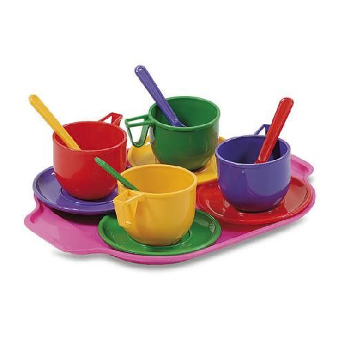 Набір пластікововй посуду, 13 елементів. Набір включає: піднос і по 4 чашки, блюдця і ложки.