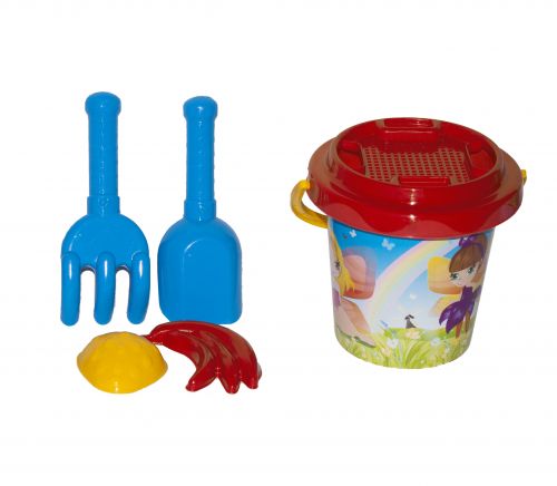 Комплектація: Відерце, ситечко, лопатка, грабельки і формочки