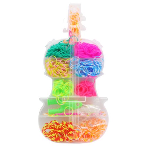 Набір яскравих різнокольорових резинок в оригінальній прозорій коробочці у вигляді квіточки. У комплекті: сполучні гачки, гачок для плетіння, рогатка та різнокольорові резиночки, за допомогою яких можна створювати різні прикраси на свій смак. Плетіння резинками розвиває творчі здібності, дрібну моторику рук та посидючість.