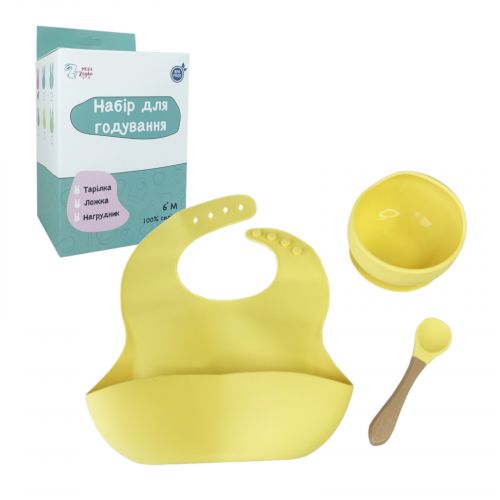 В такій тарілці можна подавати страви різні за температурою та консистенцією. Завдяки великій присосці на дні, тарілка надійно фіксується на поверхні стола, Ергономічна ложечка дозволяє батькам годувати малюка максимально зручно. Матеріал тарілочки — харчовий силікон — цілком безпечний для дитини та якісний у повсякденному використанні. Силікон — це той матеріал, що не б’ється, не тріскається, не змінює колір. Обʼєм тарілки – 300 мл. У комплекті йде деревʼяна ложка та силіконовий слинявчик. За набором легко доглядати, досить просто помити під теплою водою з дитячим миючим, Можна дезінфікувати, ставити у посудомийну машину та мікрохвильовку. Рекомендовано для дітей від 6 місяців.