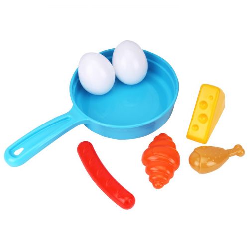 Набір “Сніданок” в сковорідці. Складається з двох яєць, сиру, м’яса, круасана та сосиски. Все виготовлено з якісного пластику. З набором можна весело гратися в кухарів. Виглядає дуже яскраво і кольорово.