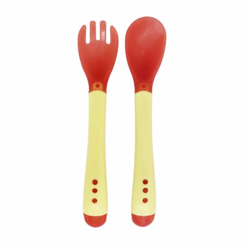 Набір дитячих столових приборів хамелеонів, які змінюють колір під впливом температури їжі. Довжина 1 приладу – 14 см. Виконано з якісних та безпечних матеріалів.