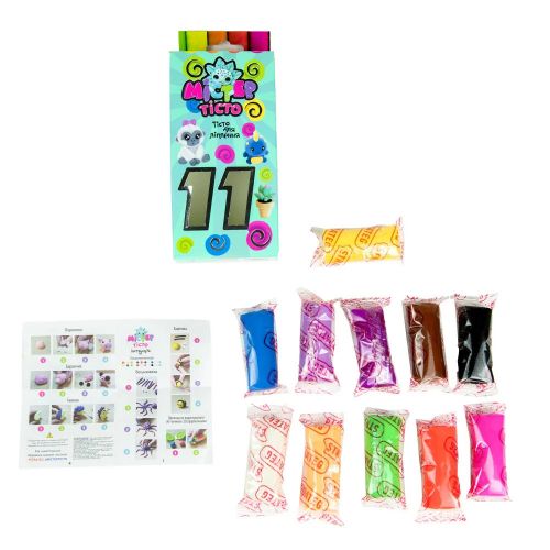 Набір для ліплення “Містер тісто”. У комплекті є: тісто для ліплення – 11 брусочків в індивідуальній упаковці. Кожен кидок виконаний у яскравому кольорі, змішуючи кольори різних брусків можна отримати унікальний колір. Виконано з якісних та безпечних матеріалів. Для дітей віком від 3-х років.
