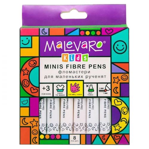 Набір різнокольорових фломастерів підійде найменшим. Великі фломастери, з товстим стрижнем. Яскраві кольори. Стрижень не вдавлюється усередину, товщина – 0,3 мм. 8 фломастерів у наборі.