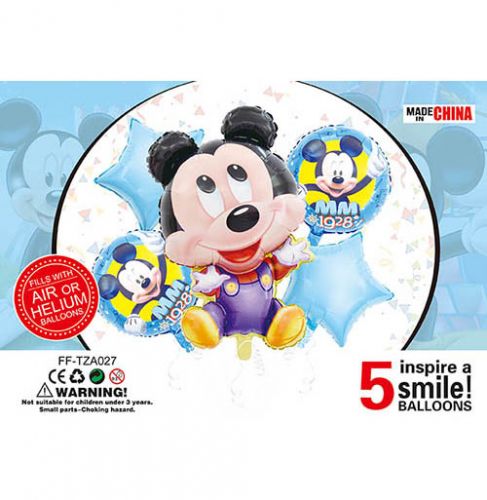 Яскравий набір кульок “Міккі Маус”. Милий та барвистий комплект. У наборі 5 фольгованих кульок: 1 велика кулька у вигляді персонажа, 2 круглі кульки з картинками та 2 кульки у формі зірки. Всі кульки якісні та надійні.