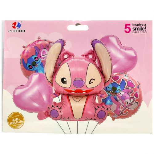 Яскравий набір кульок “Стіч”. Милий та барвистий комплект. У наборі 5 фольгованих кульок: 1 велика кулька у вигляді Анлег, 2 з милою, романтичною парою – Стіч та Ангел, та 2 у формі сердець. Всі кульки якісні та надійні. Принесуть безліч позитивних емоцій імениннику та гостям на святі!