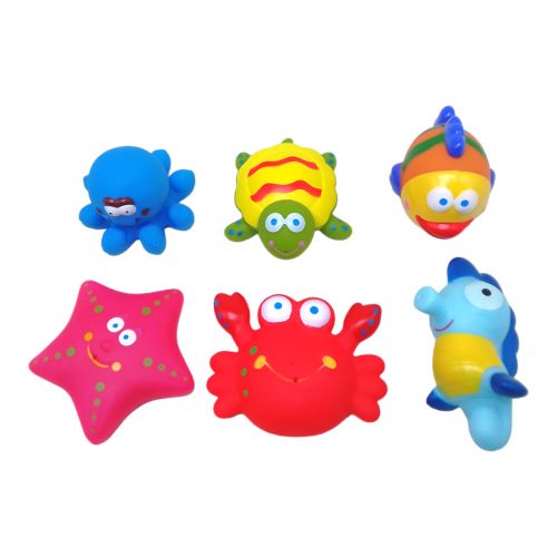 Ці яскраві та безпечні іграшки виготовлені з високоякісної, приємної на дотик гуми, яка повністю безпечна для дітей. Кожна іграшка має унікальні деталі, які допоможуть розвивати моторику малюків, а також стимулювати їхню уяву та креативність під час гри у воді. Розмір однієї іграшки – 8х6х4 см.